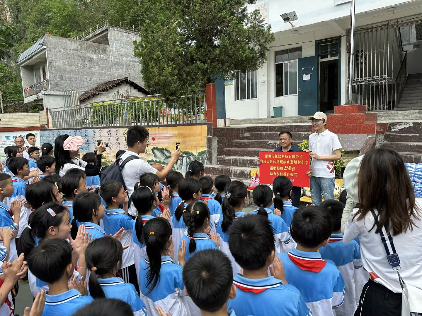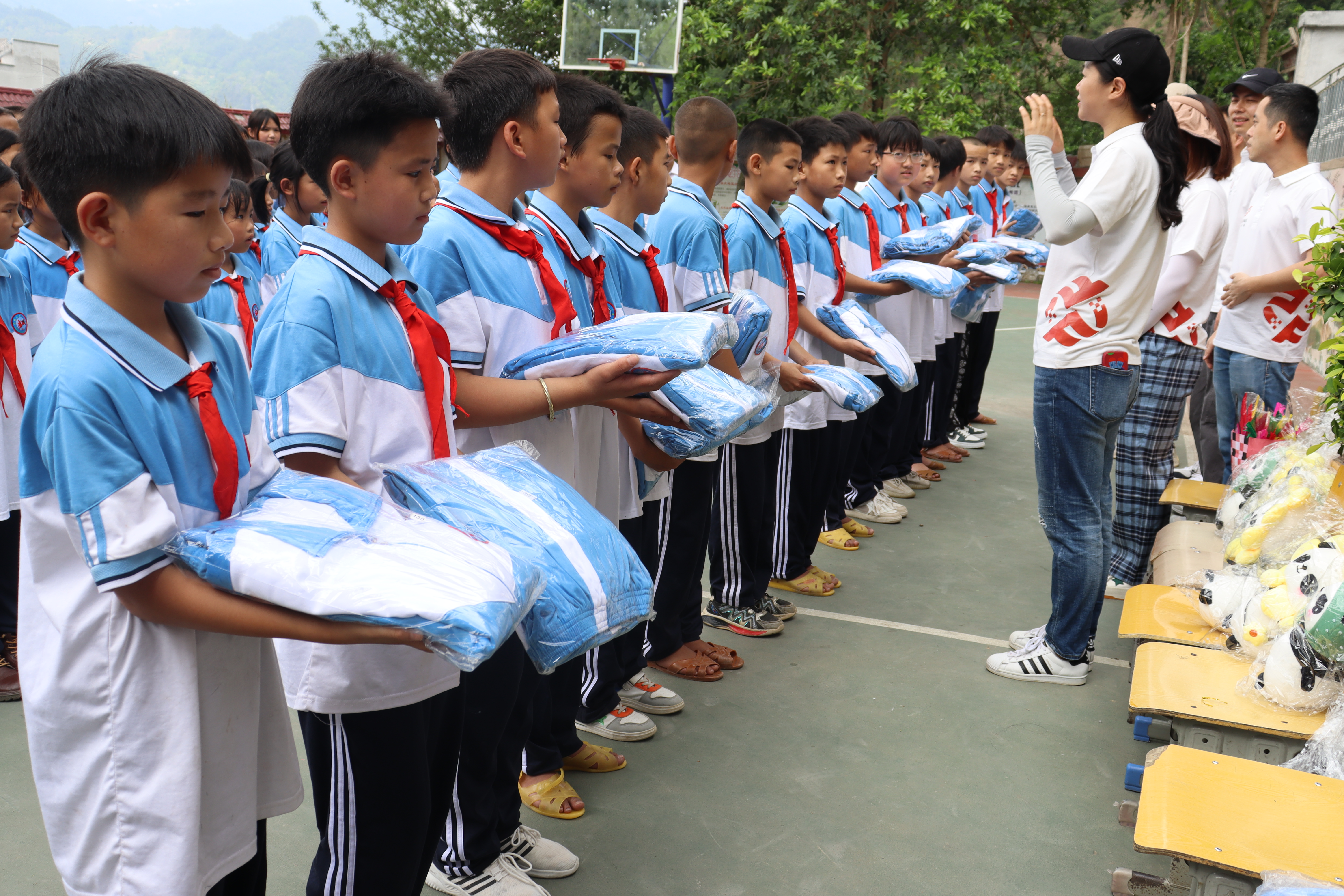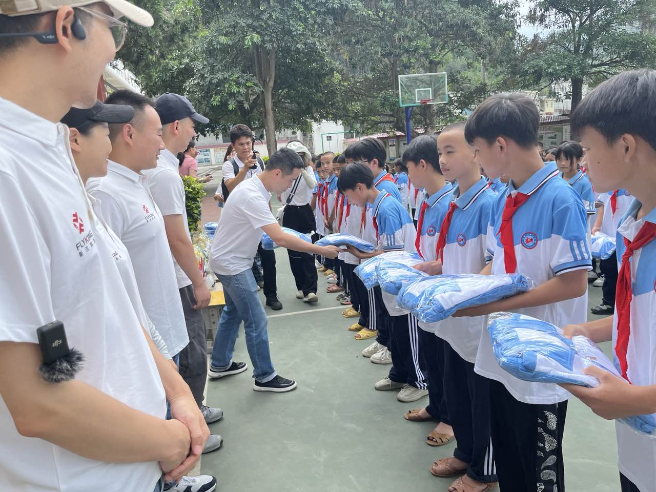 On the 26th, Fred Wang, the VP of Flyking, Chen, the principal of Naba Primary School, and the other 9 Flyking colleagues, attended the donation ceremony together. During the ceremony, Flyking donated prepared 250 sets of school uniforms. We all regarded this donation as not only material assistance but also spiritual support, with the wish to study hard and fight for better lives.